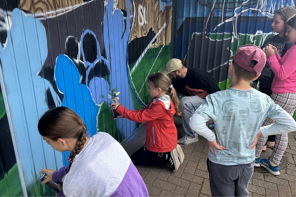 Glehner Mädchen gestalten Graffiti-Kunstwerk am Sportplatz – FuPa