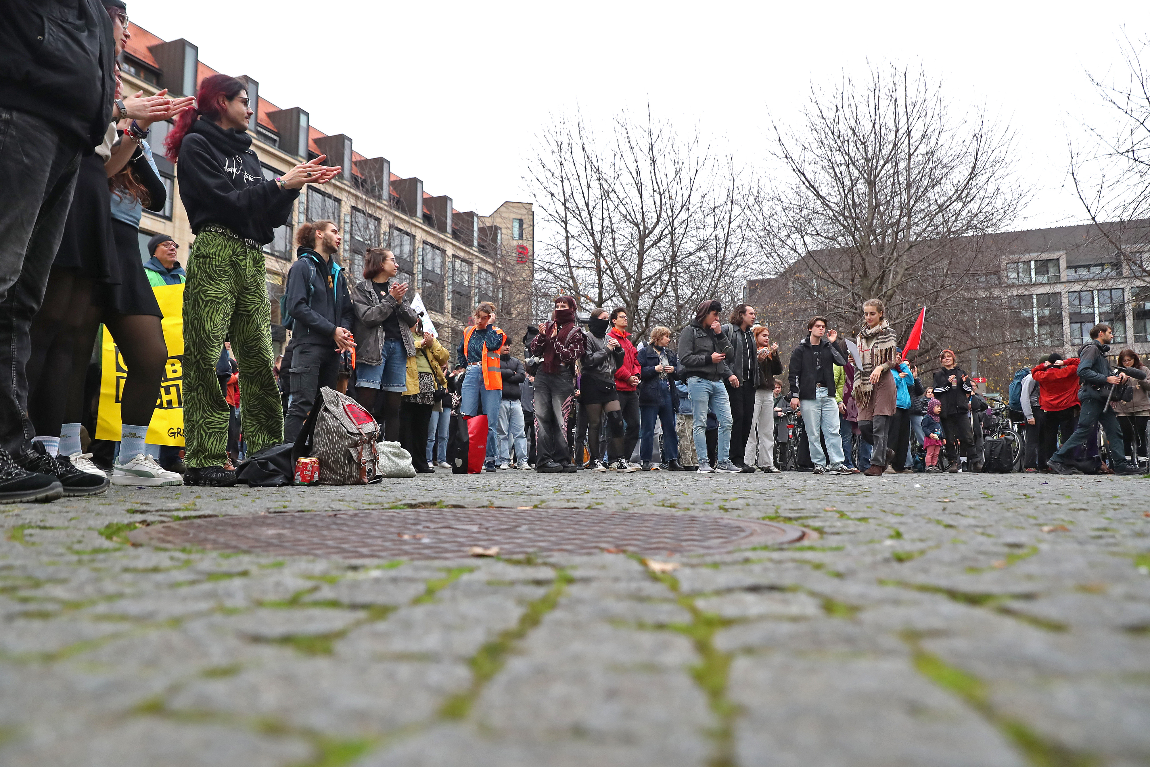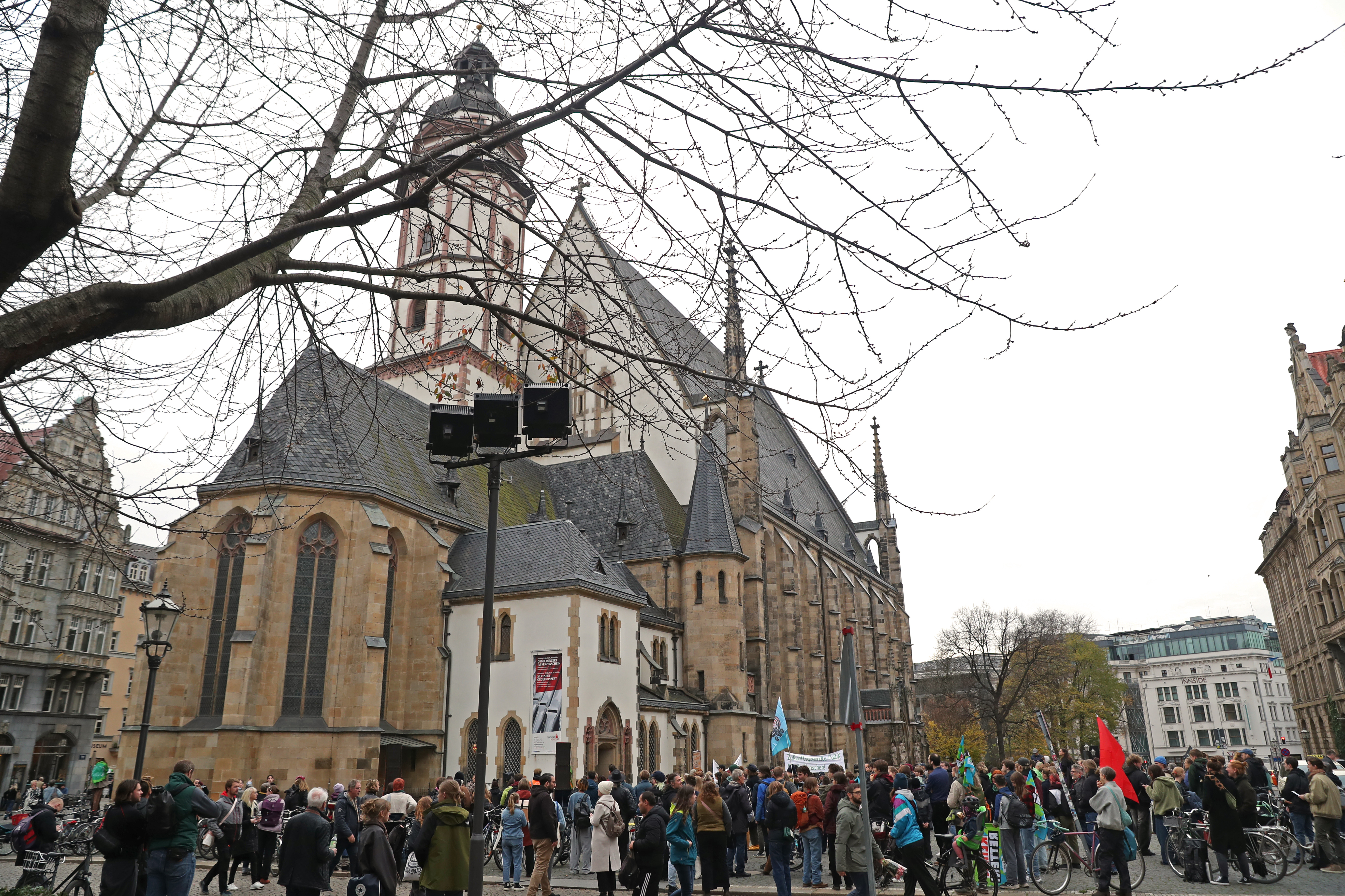 Klimaprotest vor der Thomaskirche Leipzig, 14.11.2025. Foto: Jan Kaefer