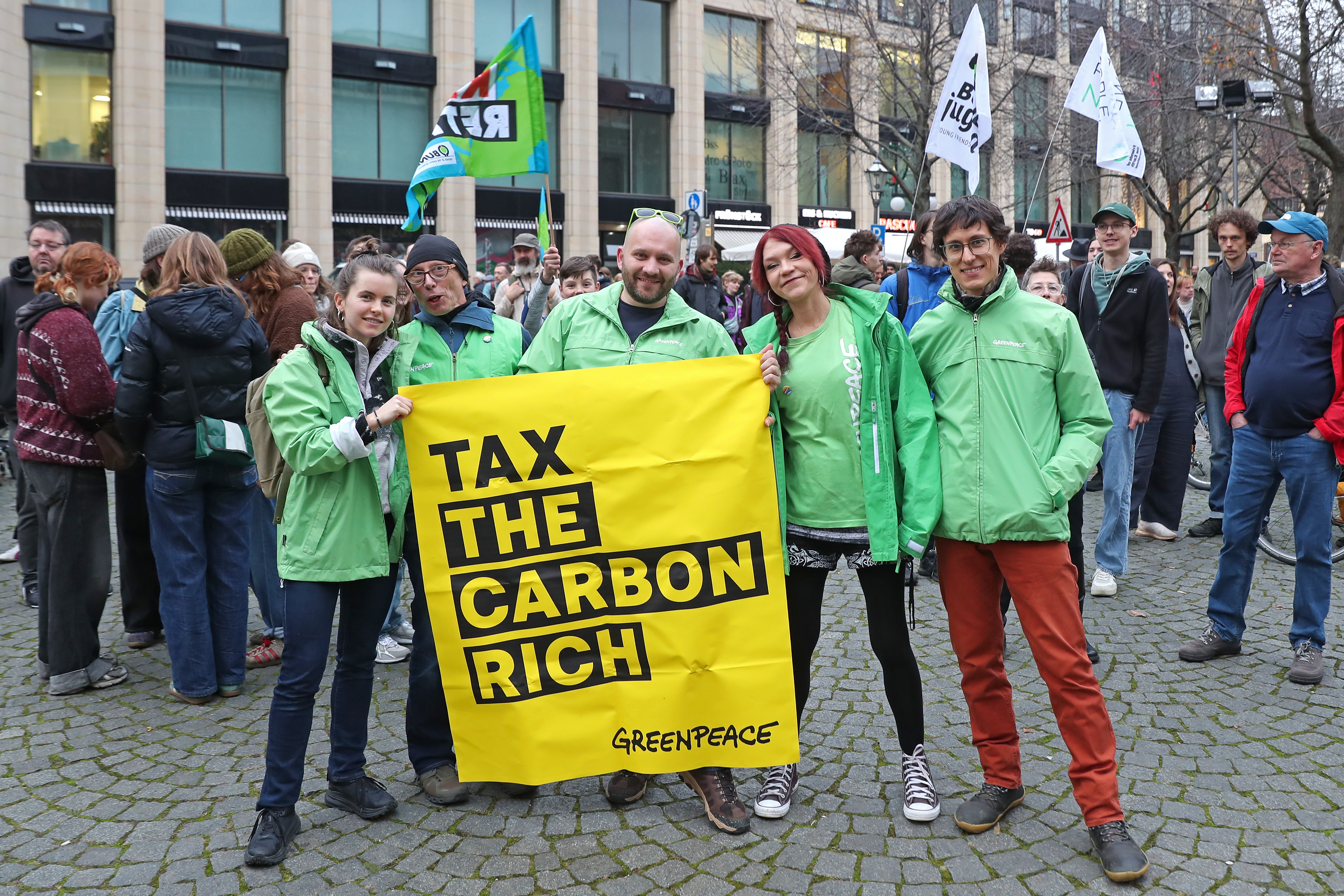 „Wir stehen hier, weil die Welt brennt!“, zeichnete Martin von Greenpeace Leipzig ein drastisches Bild. „Wir brauchen saubere Luft zum Atmen. Tax the Superrich! Nicht weil wir neidisch sind, sondern weil wir leben wollen!“.