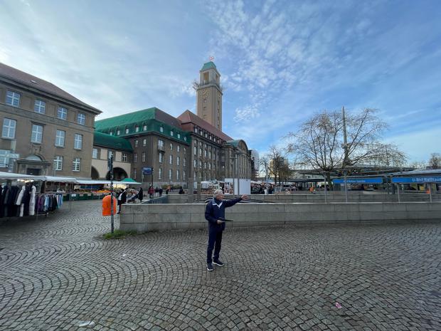 Uwe Rösler, neuer Chef des Weihnachtsmarkt Spandau, diese Woche auf dem Rathausplatz beim Tagesspiegel-Termin.