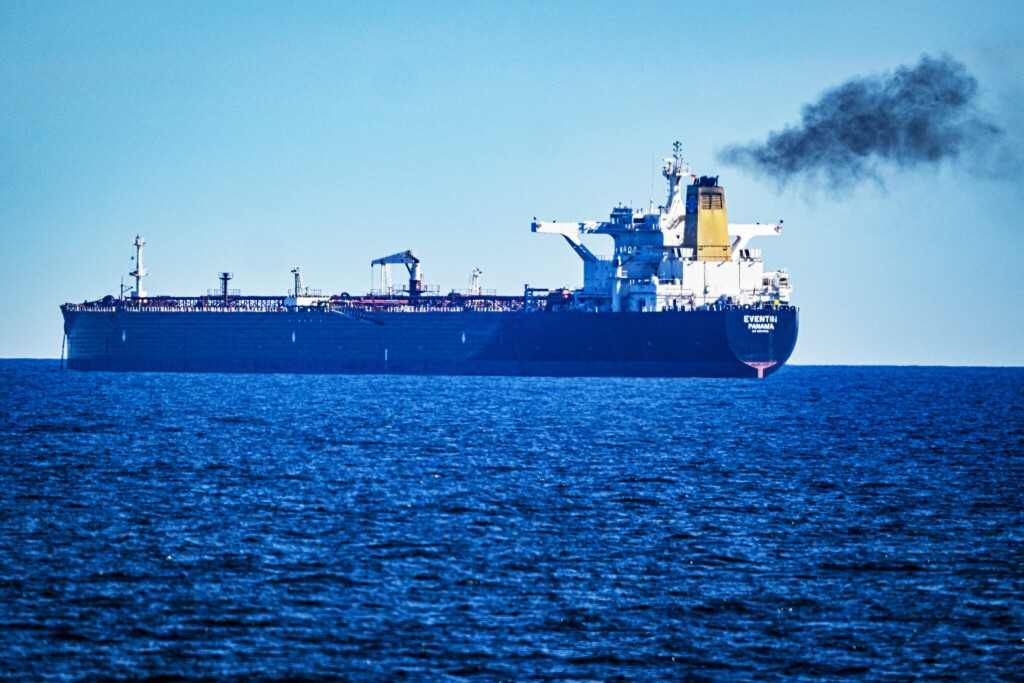 Das von Deutschland beschlagnahmte Tankschiff Eventin, das zu Russlands Schattenflotte gehört, liegt noch immer vor Rügen. (IMAGO / Funke Foto Services)