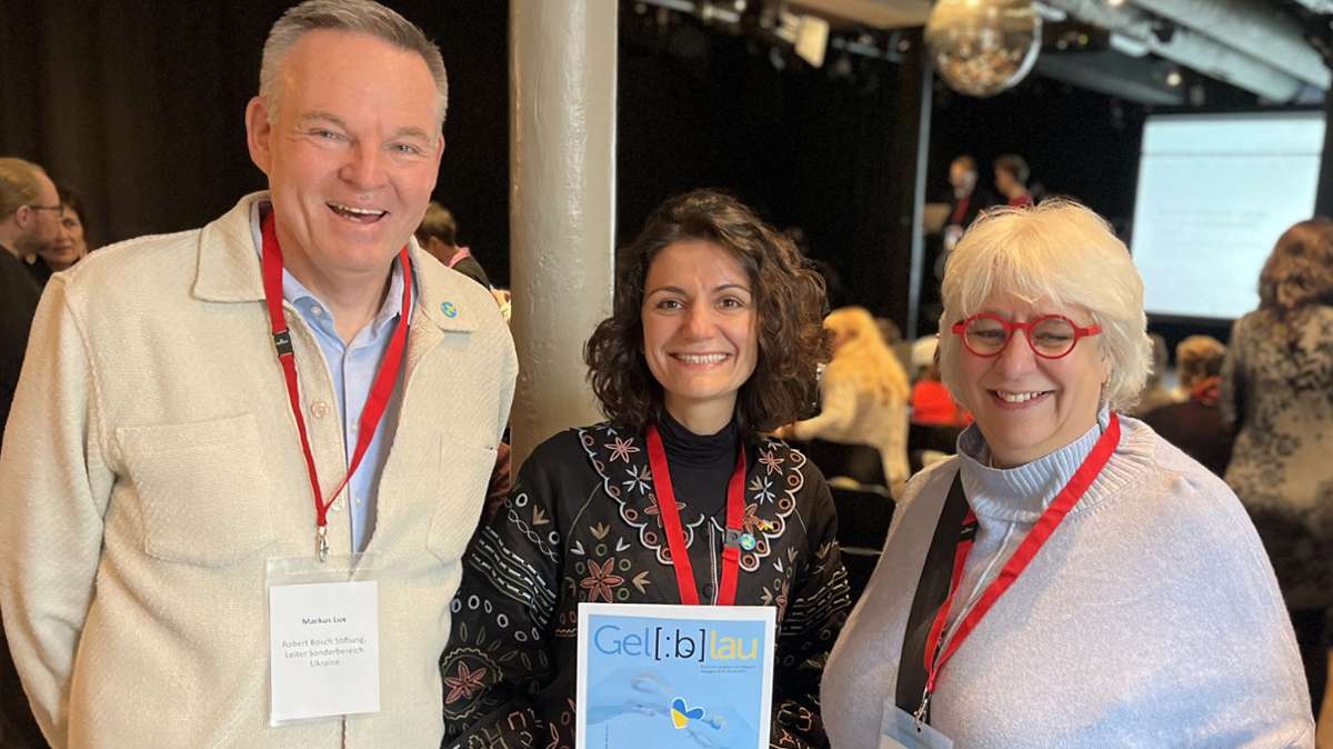 Markus Lux von der Robert-Bosch-Stiftung, Afina Albrecht von der Bürgerstiftung Stuttgart, und Irene Armbruster, Geschäftsführerin der Bürgerstiftung Stuttgart, beim Besuch der Delegation. Foto: Bürgerstiftung Stuttgart