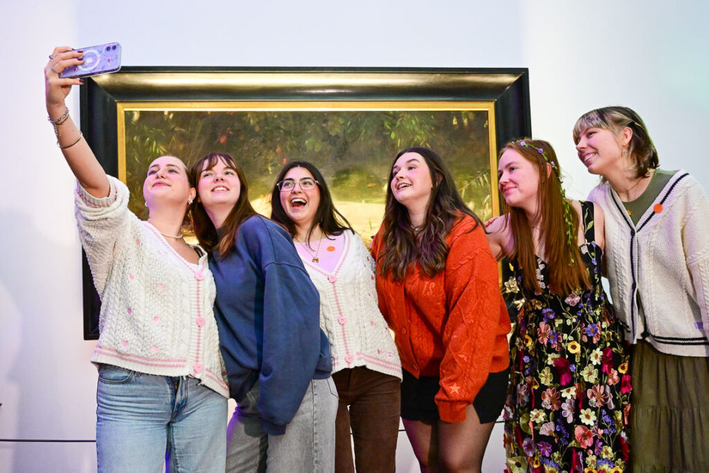 Während im Foyer des Hessischen Landesmuseums für Kunst und Natur Popmusik aus den Boxen läuft, posieren junge Frauen. Sie tragen Taylor-Swift-Shirts oder sind verkleidet als Ophelia. Insgesamt rund 200 Fans der US-amerikanischen Popikone sind am Sonntagnachmittag zur ersten Swift-Sonderveranstaltung ins Museum Wiesbaden gekommen – um ein wiederentdecktes Jugendstilgemälde aus dem 20. Jahrhundert zu sehen, sich in Szene zu setzen und am Ende mit einem Selfie weiterzugehen.