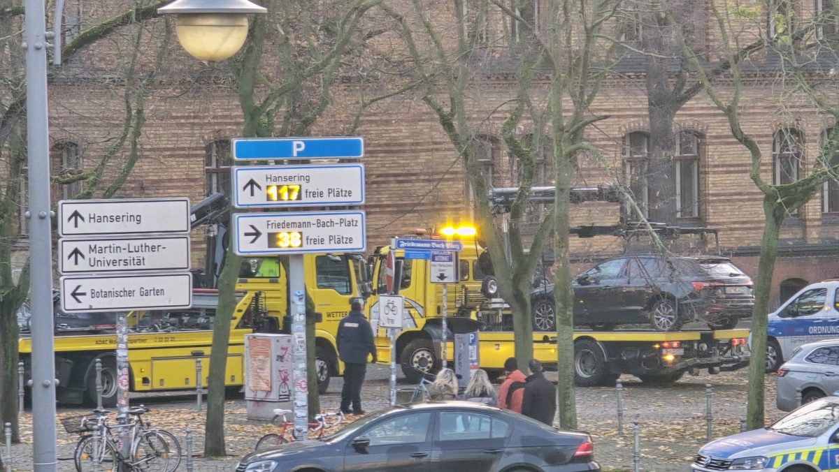 8.10 Uhr: Der Parkplatz ist gesperrt, Autos werden abgeschleppt.