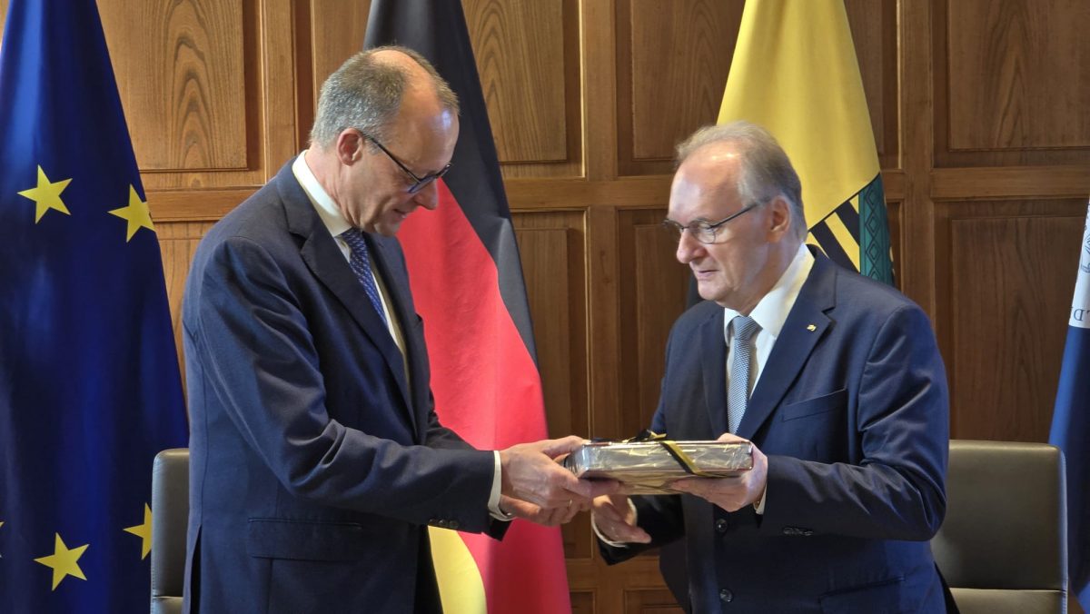 Bundeskanzler Friedrich Merz ist heute in Halle (Saale), zunächst in der Leopoldina, später am Weinberg Campus beim Max-Planck-Institut und bei der Firma Sonotec.