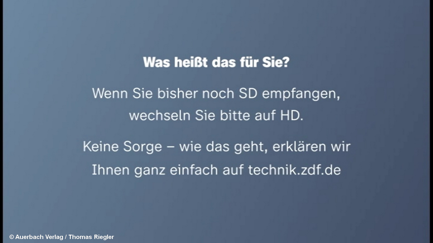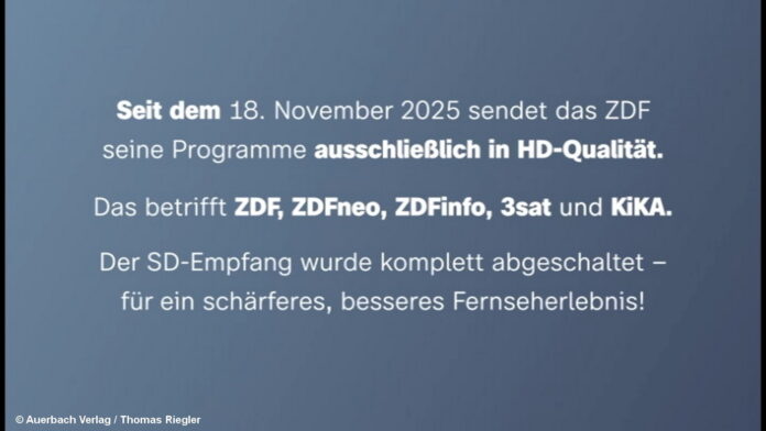 Seit der SD-Abschaltung werden auf den ZDF-SD-Kanälen Hinweistafeln ausgestrahlt