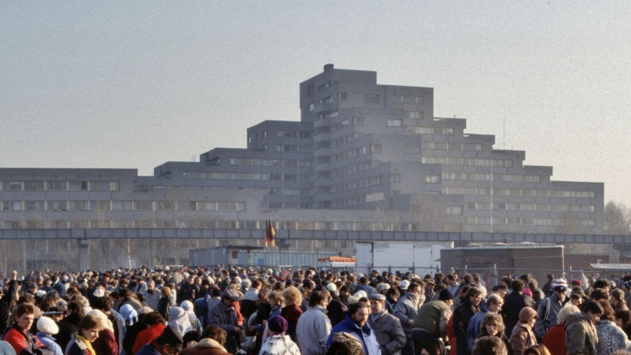 Blick auf das Studentenwohnheim Köthener Straße/Hafenplatz. Das Foto ist am Standort des heutigen Tilla-Durieux-Parks entstanden. (1989) / © Foto: Wikimedia Commons, Aad van der Drift, CC BY 2.0