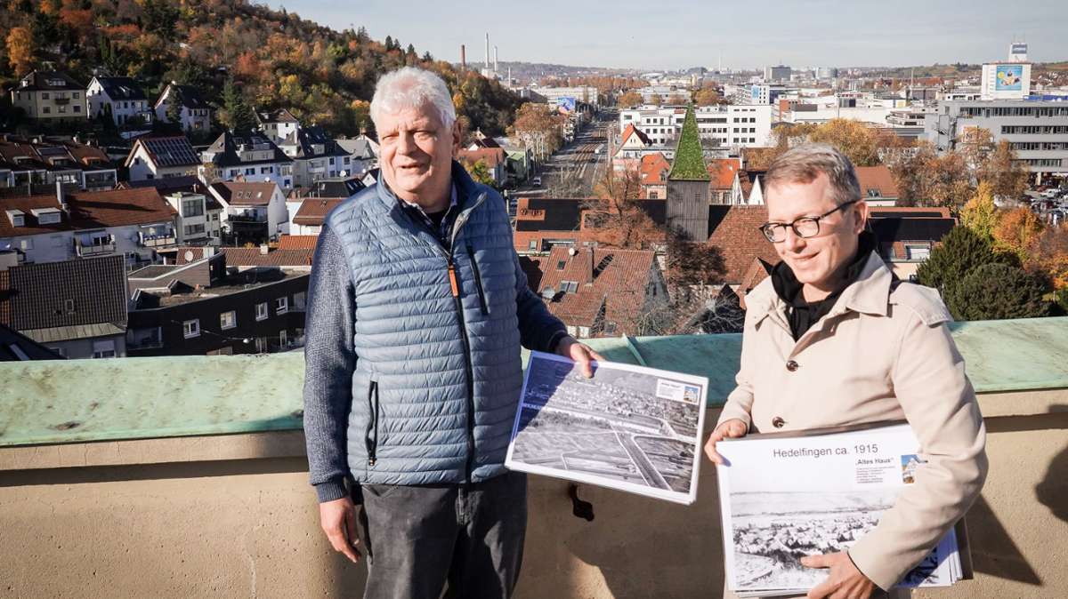 Michael Wießmeyer und Kai Freier stehen auf dem Turm der Kreuzkirche in Hedelfingen, ihre Blicke schweifen über Häuserdächer, Weinreben und den Frauenkopf. Stadtflucht, so Wießmeyer, der Experte für die Hedelfinger Ortsgeschichte ist, habe es schon zu Beginn des vergangenen Jahrhunderts gegeben. „Leo Vetter zog damals aus dem Zentrum Stuttgarts raus nach Hedelfingen, um auf dem Land zu leben“, sagt er über den Bäderpionier. „Man ist schnell in der Innenstadt, aber auch schnell im Grünen“, schwärmt der Vorsitzende des Fördervereins für eine heimatkundliche Sammlung im Stadtbezirk Hedelfingen/Rohracker. „Wir können von hier aus zum Fernsehturm laufen – und müssen dabei nur zweimal eine Straße überqueren.“