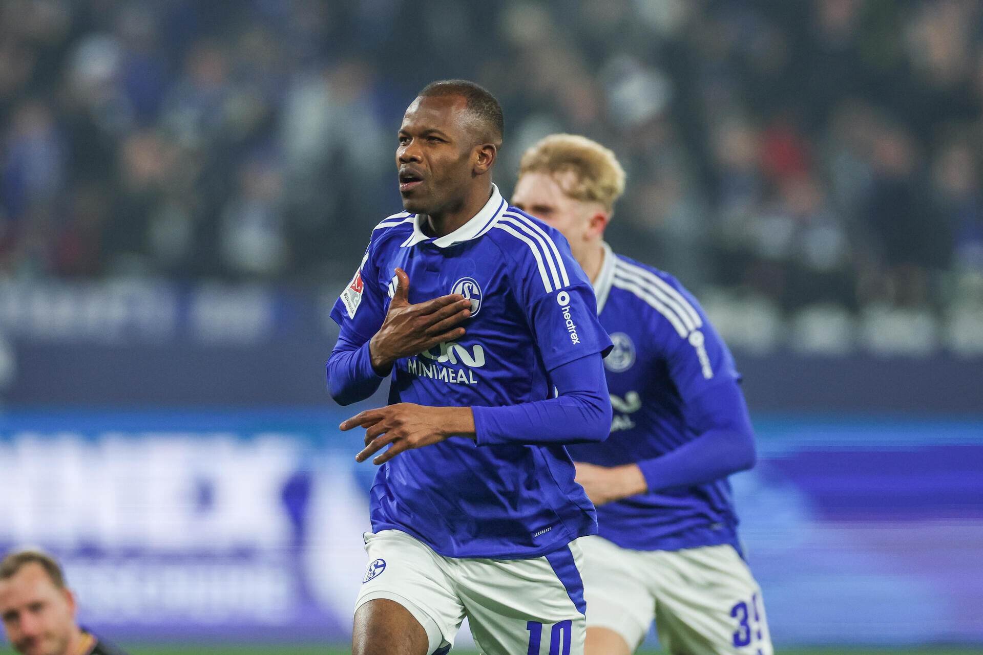 So jubelte Pape Meïssa Ba bei seinem Tor zum 1:0 gegen Münster in der Veltins-Arena.© RHR-FOTO