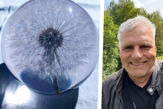 Über ein kleines Geschenk – eine Pusteblume in einem Briefbeschwerer – hat sich Angela Preugschas am Volkstrauertag gefreut – ein Thema für die „Nordost-Geschichten“ von Andreas Schröter. © Montage: Andreas Schröter