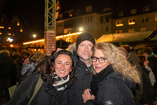 Ausgesprochen gute Laune hatten die Besucherinnen und Besucher des Weihnachtsdorfs in Castrop-Rauxel am Freitagabend (22.11.25). © Simon Ohly