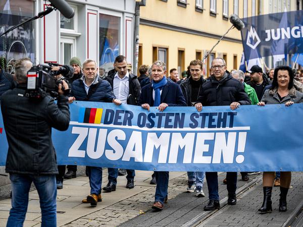 Gemeinsam mit dem Thüringer AfD-Landeschef Björn Höcke demonstrierte Holm 2023 in Erfurt.
