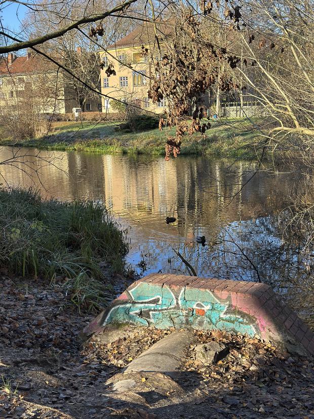 An einem sonnigen Novembertag ist es ruhig um die Mittagszeit am Breitkopfbecken, wie man den Teich im Zentrum der Siedlung nennt. Viel Himmel zwischen flachen, dreigeschossigen Zeilen. Am leeren Spielplatz fotografieren zwei vom Bezirk bestellte Kiezläufer eine heimlich in die Büsche gestellte Schrottcouch.