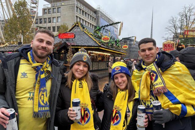 Die ersten Villarreal-Fans sind schon in Dortmund unterwegs und stimmen sich auf das Spiel ein. © Martin Bytomski