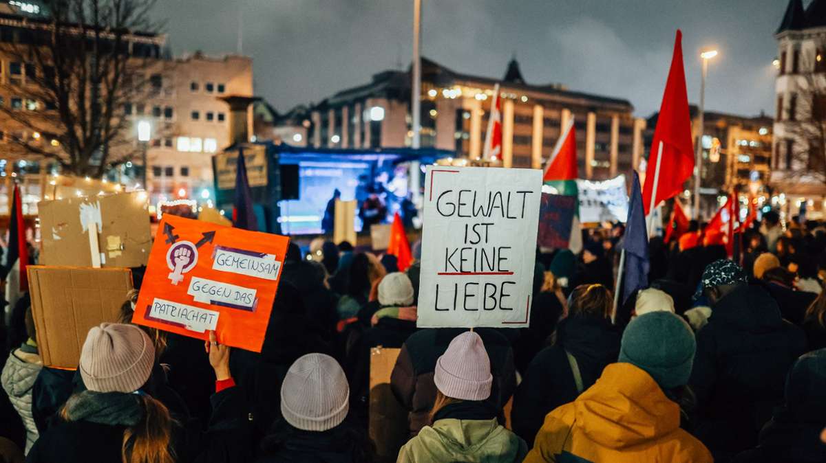 Teilnehmende demonstrieren gegen patriarchale Gewalt