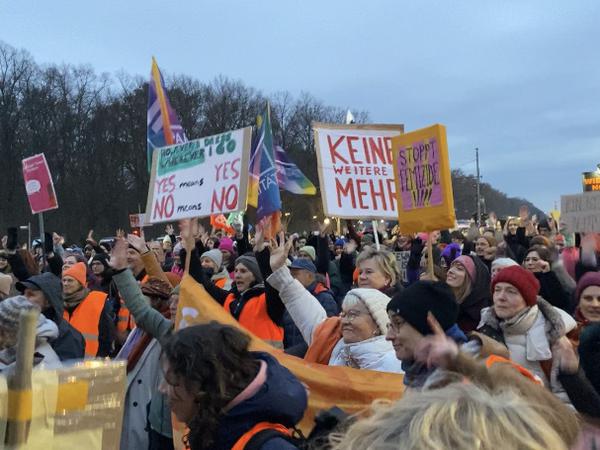 Zum internationalen Tag gegen Gewalt an Frauen sind am Dienstag zahlreiche Menschen in Berlin auf die Straße gegangen. So hatte ab 16 Uhr etwa ein Bündnis zu einer Demonstration mit dem Motto „Kürzt ihr uns zu Tode?! – Lasst uns gewaltfrei leben!“ am Brandenburger Tor aufgerufen.