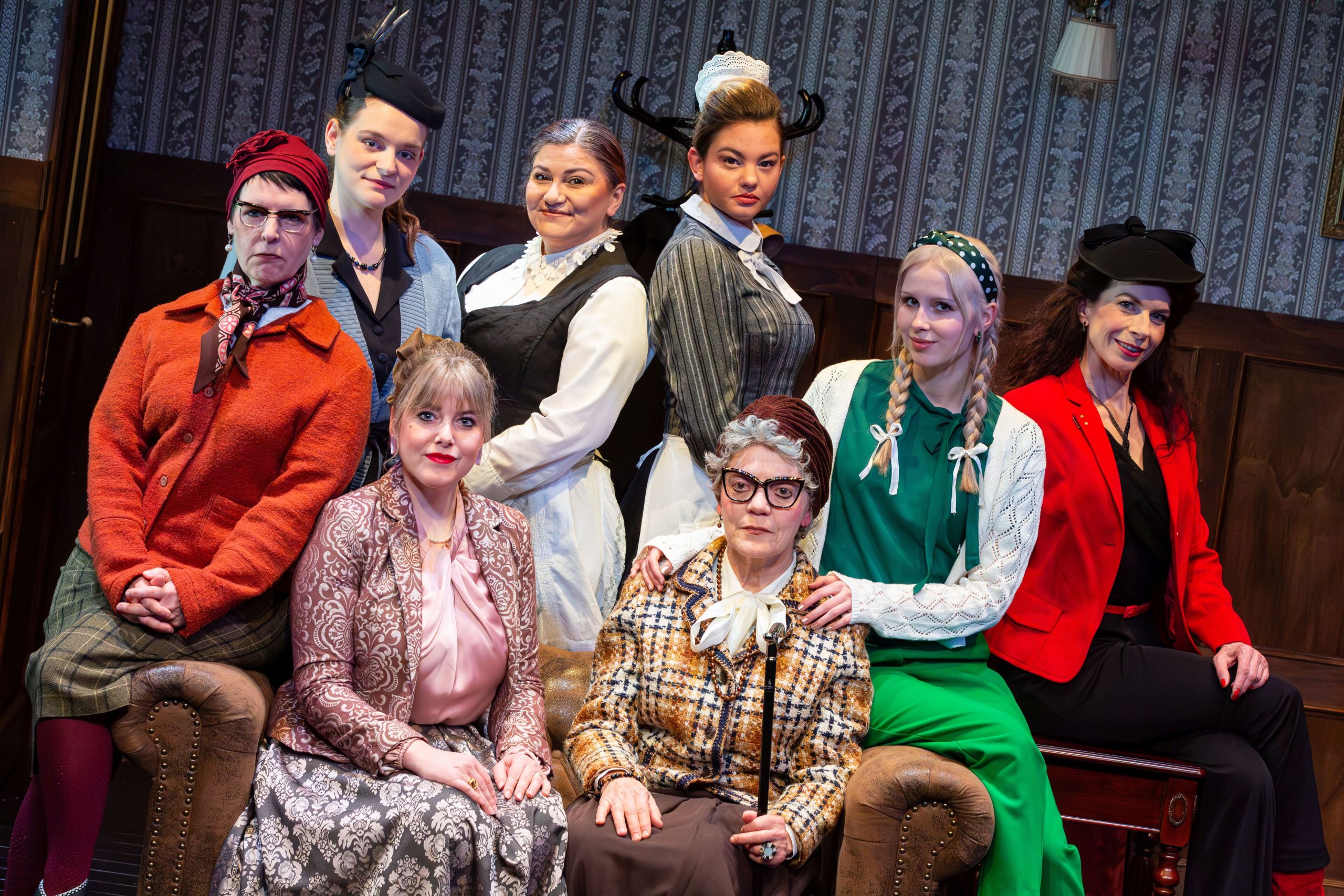 Das Ensemble der amüsanten Krimi-Komödie „Die 8 Frauen“, die im TiC-Theater über die Bühne geht – © Verbessert RR