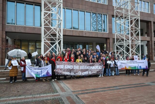 Die im Februar 2025 beschlossene Brandmauer im Dortmunder Rat ist Geschichte. Sie ist aus rechtlichen Gründen von der Arnsberger Bezirksregierung gekippt worden. Trotzdem haben SPD, Grüne & Volt, Linke & Tierschutzpartei sowie „Die Partei“ am Donnerstag (27.11.) gemeinsam mit „Omas gegen Rechts“ mit einem Banner vor dem Rathaus deutlich gemacht, sich auf keine Zusammenarbeit mit der AfD einzulassen.