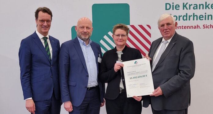Aufsichtsratsvorsitzende Marion Gutsche sowie die Geschäftsführung Thorsten Celary (Vorsitzender) und Dr. Silke Kühnle, wurden am 28. November 2025 zur Übergabe der Förderbescheide im Rahmen der Umsetzung der Krankenhausplanung Nordrhein-Westfalen von Ministerpräsident Hendrik Wüst und Minister Karl-Josef Laumann in die Staatskanzlei eingeladen.