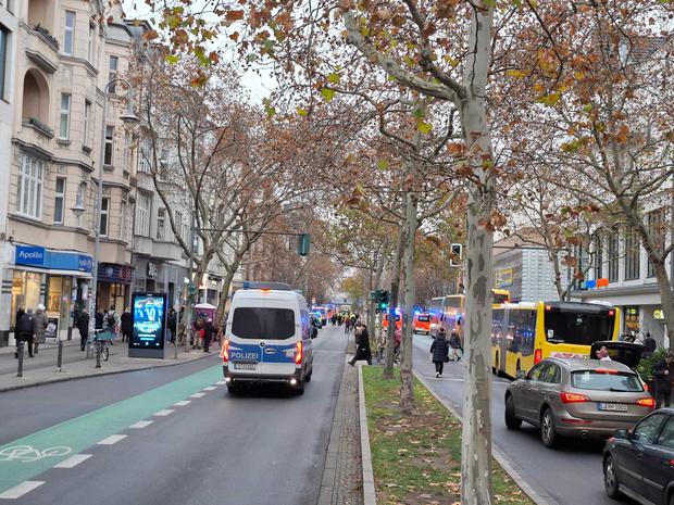 Die Schloßstraße in Steglitz. Im Hintergrund sind die Einsatzfahrzeuge der Berliner Feuerwehr am U-Bahnhof zu sehen.