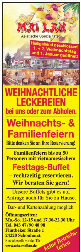 Am Freitag, 12. Dezember, steht ab 18 Uhr ein weiteres Highlight an: Der Frauengesprächskreis „Quo vadis? Wo geiht dat hin?“ trifft sich zur traditionellen Weihnachtsfeier. Dieser Gesprächskreis ist ein offenes Angebot für Frauen jeden Alters, die Lust haben, sich in entspannter Atmosphäre auszutauschen. „Auch neugierige neue Teilnehmerinnen sind herzlich willkommen“, so Frahm. Eine Anmeldung ist nicht erforderlich.