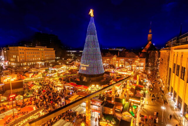 Vom 20. November bis zum 30. Dezember öffnet der Dortmunder Weihnachtsmarkt als „Weihnachtsstadt“ im Jahr 2025 seine Tore. Vor allem der größte Weihnachtsbaum der Welt lockt jährlich viele Besucher an. Ob bummeln, essen oder Glühwein trinken – wer den Weihnachtsmarkt besucht, den erwarten viele verschiedene Stände.