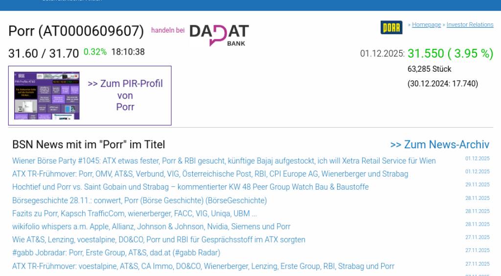 Porr am 1.12. 3,95%, Volumen 97% normaler Tage