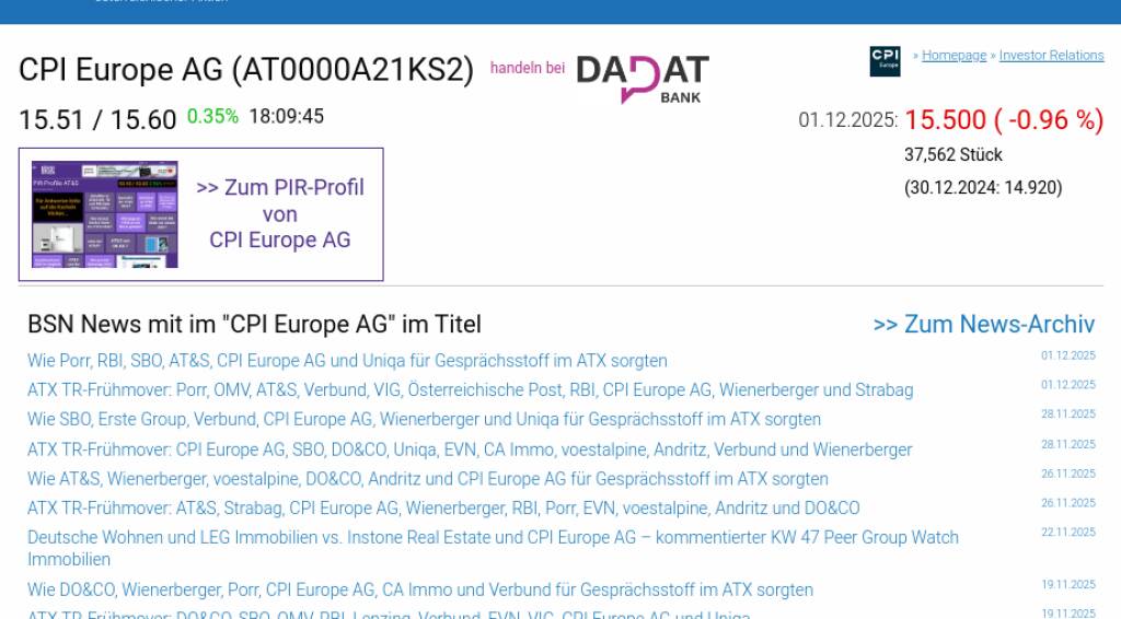 CPI Europe AG am 1.12. -0,96%, Volumen 81% normaler Tage