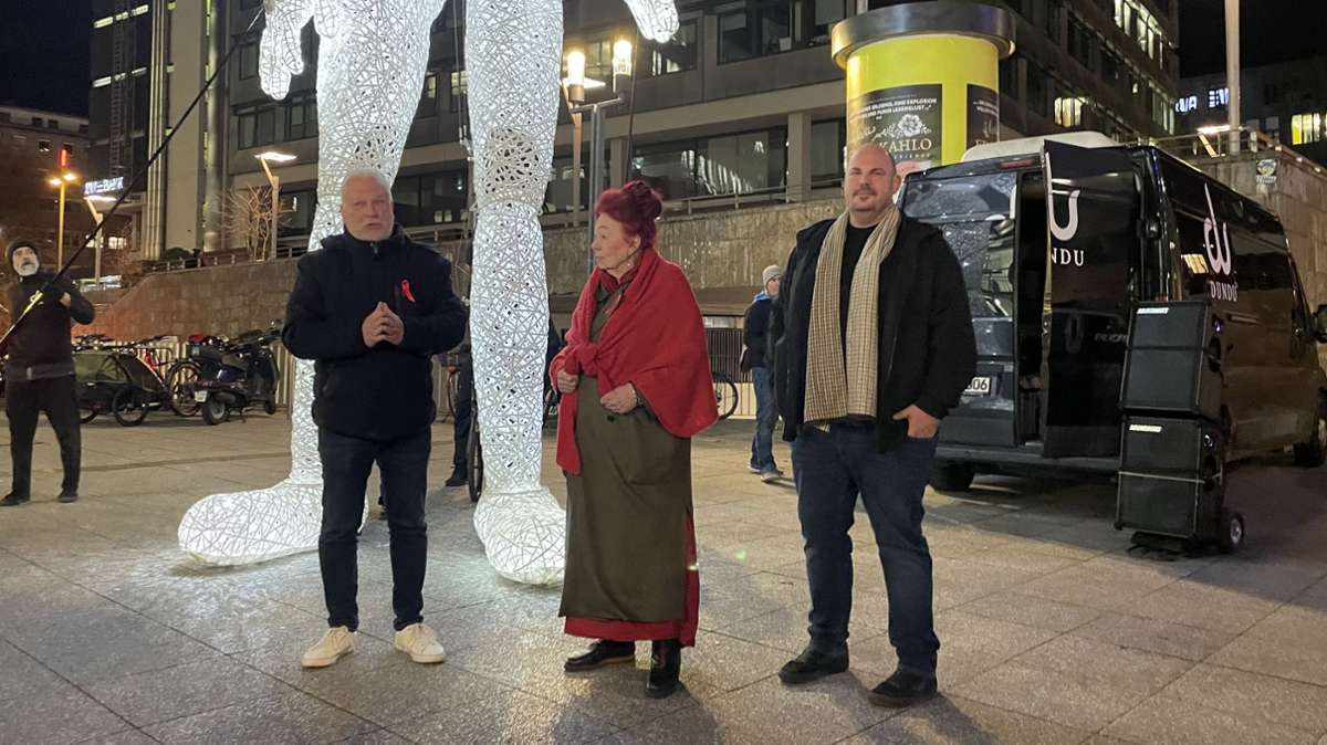 Zum Welt-Aids-Tag am 1. Dezember und ihrem 40-jährigen Bestehen setzte die Aids-Hilfe Stuttgart e.V. am Montagabend mit einer besonderen Aktion in der Stuttgarter Innenstadt ein symbolisches Zeichen und rief zu Solidarität und Unterstützung von Betroffenen auf.