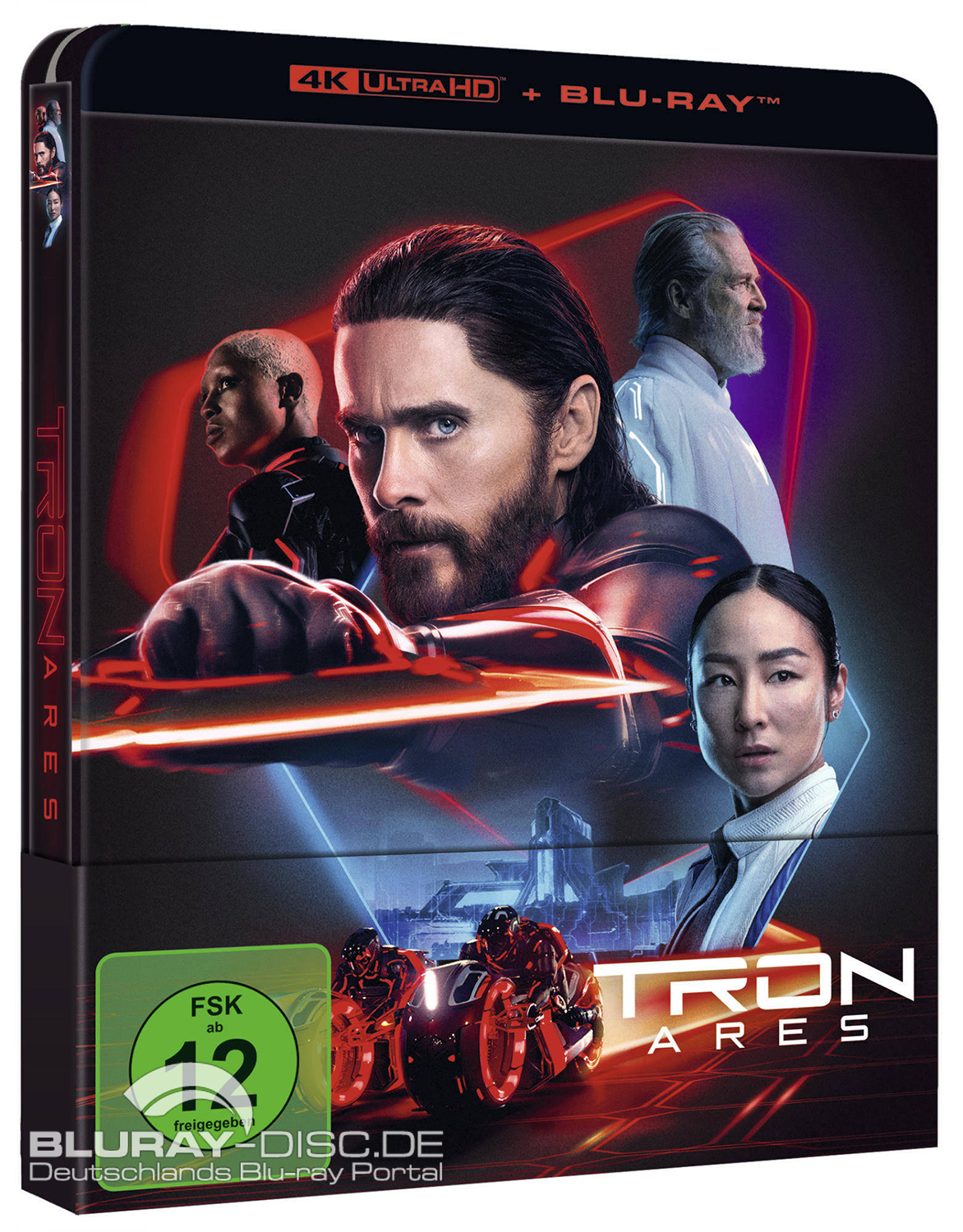 In „Tron: Ares“ (USA, Kanada, Neuseeland 2025) setzt Regisseur Joachim Rønning nach einem Drehbuch von Jesse Wigutow die Geschichten aus „Tron“ (USA 1982) und „Tron: Legacy“ (USA 2010) fort. Jared Leto ist zum ersten Mal in der Reihe an der Seite von Greta Lee, Evan Peters und Gillian Anderson als Hauptdarsteller zu sehen, während Jeff Bridges wieder seine Rolle aus den vorherigen Teilen verkörpert. Für die musikalische Untermalung zeichnen Nine Inch Nails verantwortlich. Nach der Kinoauswertung, die hinter den Erwartungen zurückblieb, wird der Science-Fiction-Film natürlich ebenso auf dem Heimkinomarkt zur Verfügung stehen. Wir konnten Sie bereits über entsprechende Produkte aus dem Ausland informieren. Aber auch hierzulande bringt Walt Disney Studios Home Entertainment das Action-Abenteuer auf Blu-ray und Ultra HD Blu-ray heraus. „Tron: Ares“ erscheint am 30. Januar 2026 im Vertrieb von Leonine in Keep Cases und im limitierten 4K-Steelbook. Die Blu-ray ist als Beigabe in den UHD-Varianten enthalten. Der deutsche Ton erklingt auf beiden Medien in Dolby Digital Plus 7.1, wohingegen zumindest die UHD Blu-ray über englischen Dolby-Atmos-Sound verfügt. Zur Sonderausstattung gehören fünf Featurettes und drei entfernte Szenen. Außerdem werden ab 30.01. die zwei Vorgängerfilme jeweils auf 4K UHD in Standardauflagen einschließlich der Blu-ray Discs und eine 3-Movie-Collection mit allen Teilen in HD zum Kauf angeboten.