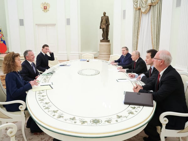 Der russische Präsident Wladimir Putin empfängt den US-Sondergesandten Steve Witkoff und Donald Trumps Schwiegersohn Jared Kushner (linke Seite).