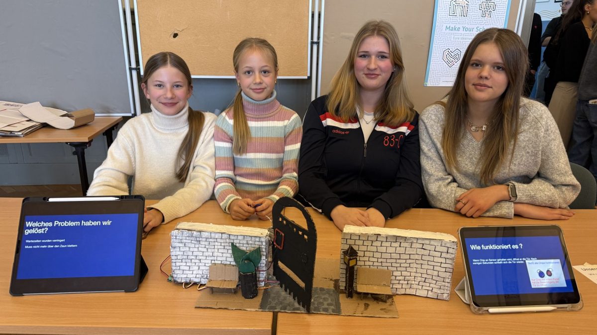 Auch die Lehrerin hat ihre Favoriten unter den Exponaten: Ebenfalls die Türöffner-Variante mit RFID-System und einen Aufsatz für den Mülleimer, der die Müllentsorgung spielerisch belohnt (Gamification). Ziel der Schule ist es nun, ausgewählte Projekte weiter zu fördern und möglicherweise in Kooperationen umzusetzen, auch wenn dies logistisch noch geprüft werden muss. Trotz der Anstrengung von sechs Tagen Dauerbetreuung für zwei Durchgänge empfand sie es als „total lohnenswert“, dass der gesamte Jahrgang diese Erfahrung machen durfte.