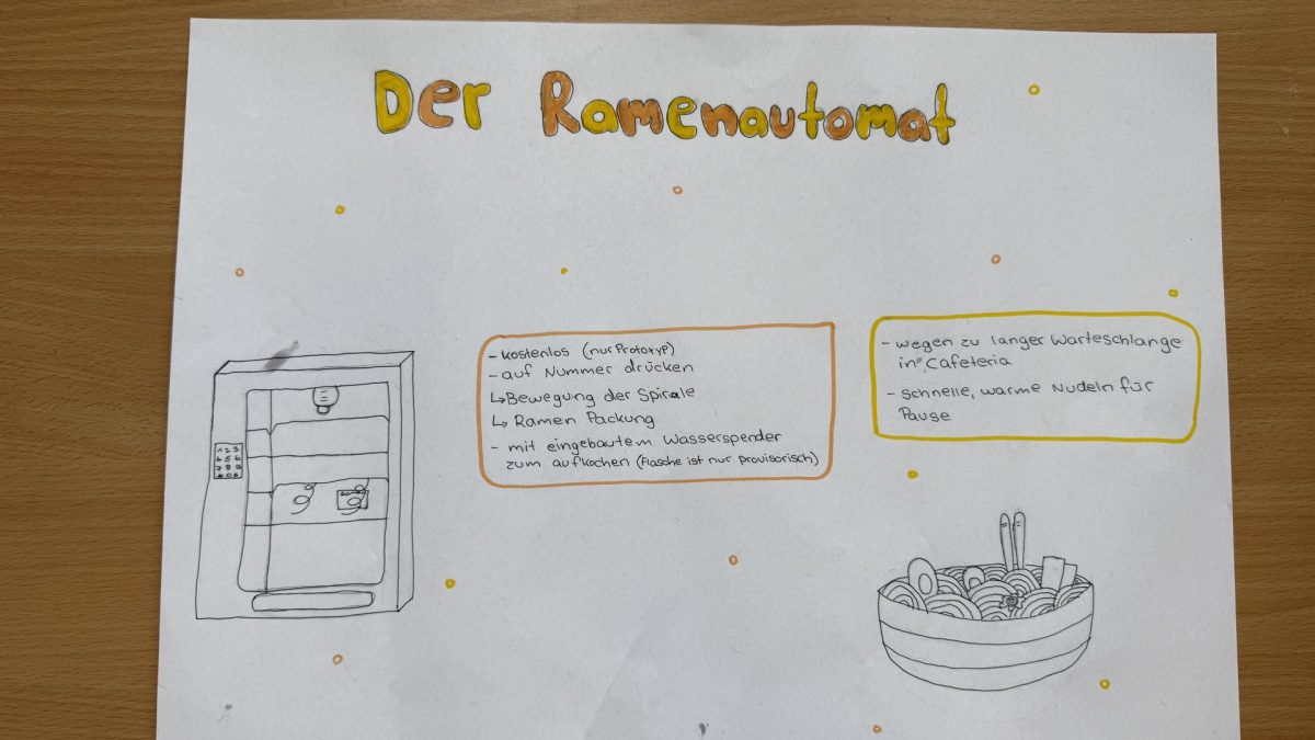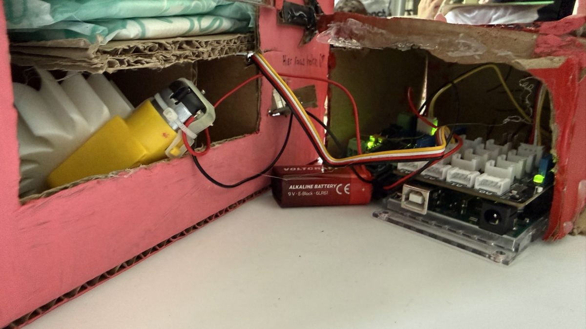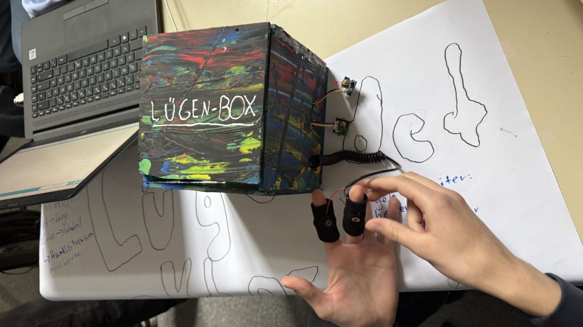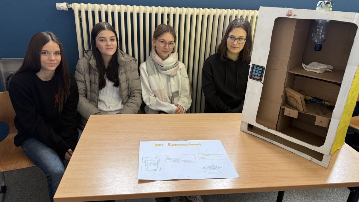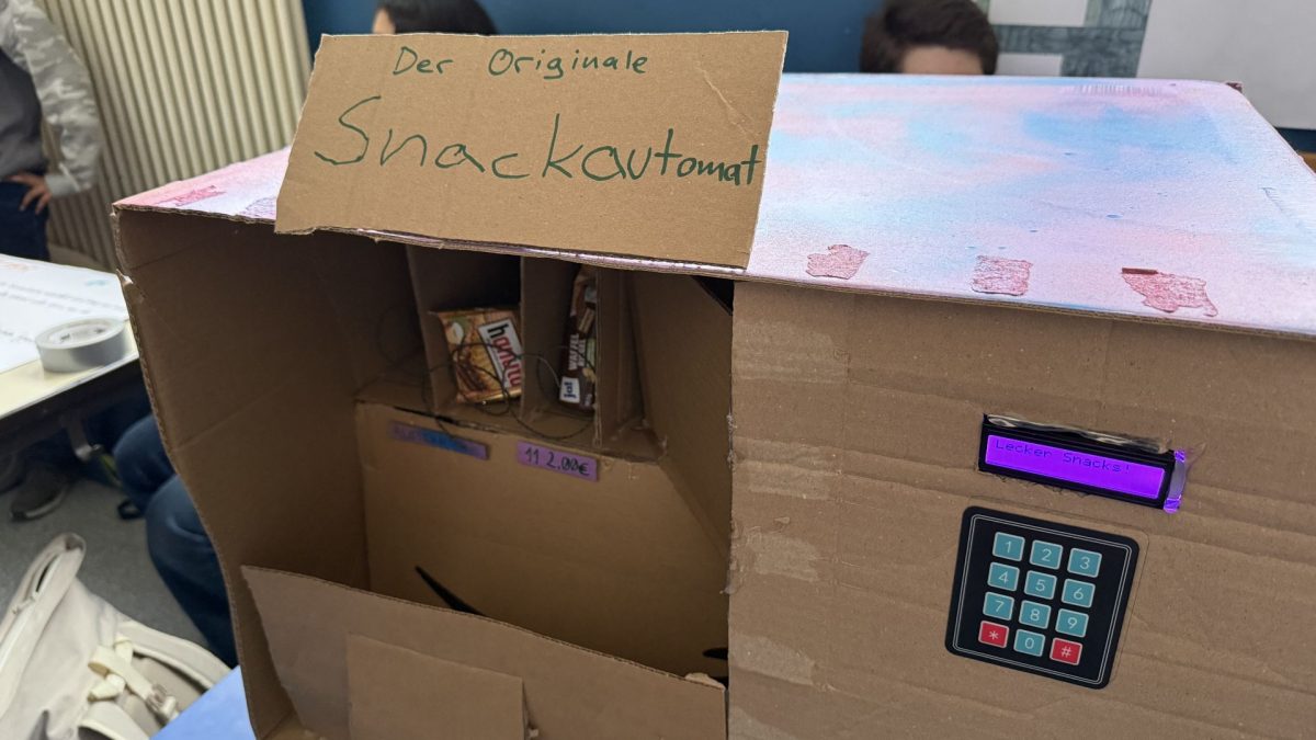 Ein konkretes Beispiel für den praktischen Nutzen des Hackathons lieferten Ella und Avin aus der Klasse 8.1. Sie entwickelten einen Hygienespenders für Damenhygieneartikel.