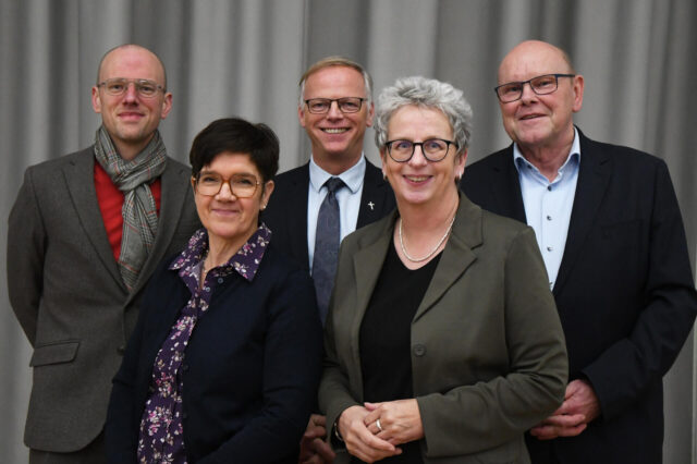 Über den Trägerwechsel bei den Kindertageseinrichtungen informierten Dr. Laurenz Wilken (v.l), Jutta Loke, Dr. Klaus Winterkamp, Gisela Niehues und Günter Eilers. © Bischöfliche Pressestelle