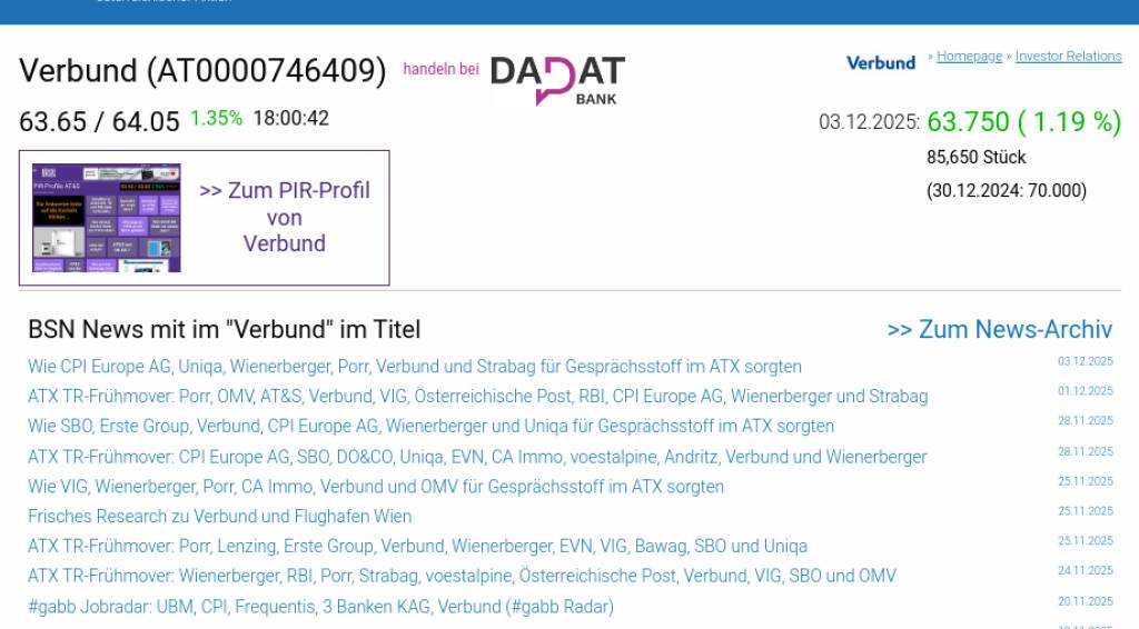 Verbund am 3.12. 1,19%, Volumen 67% normaler Tage