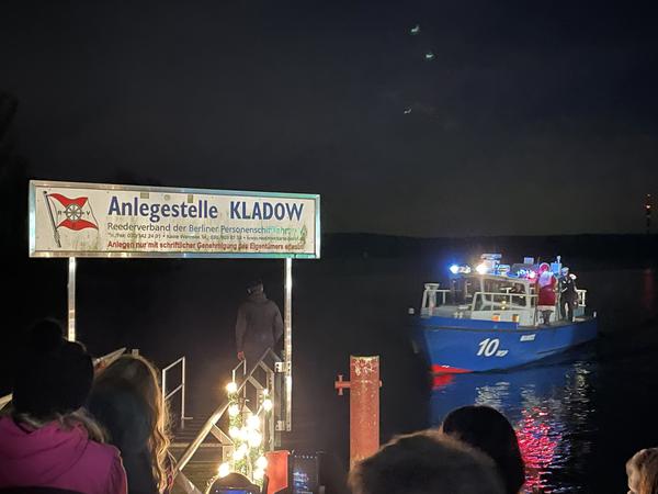 Der Weihnachtsmann kommt traditionell am frühen Abend mit der Wasserschutzpolizei.