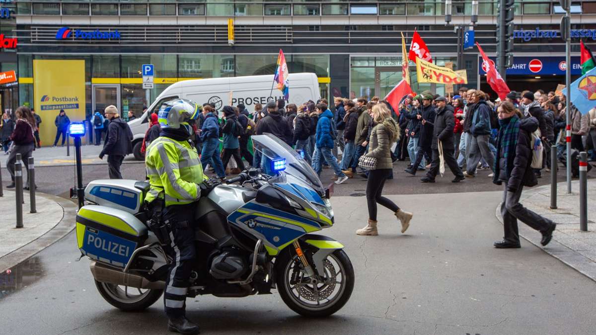 Die Polizei bei der Demo Foto: Lichtgut/Leif Piechowski