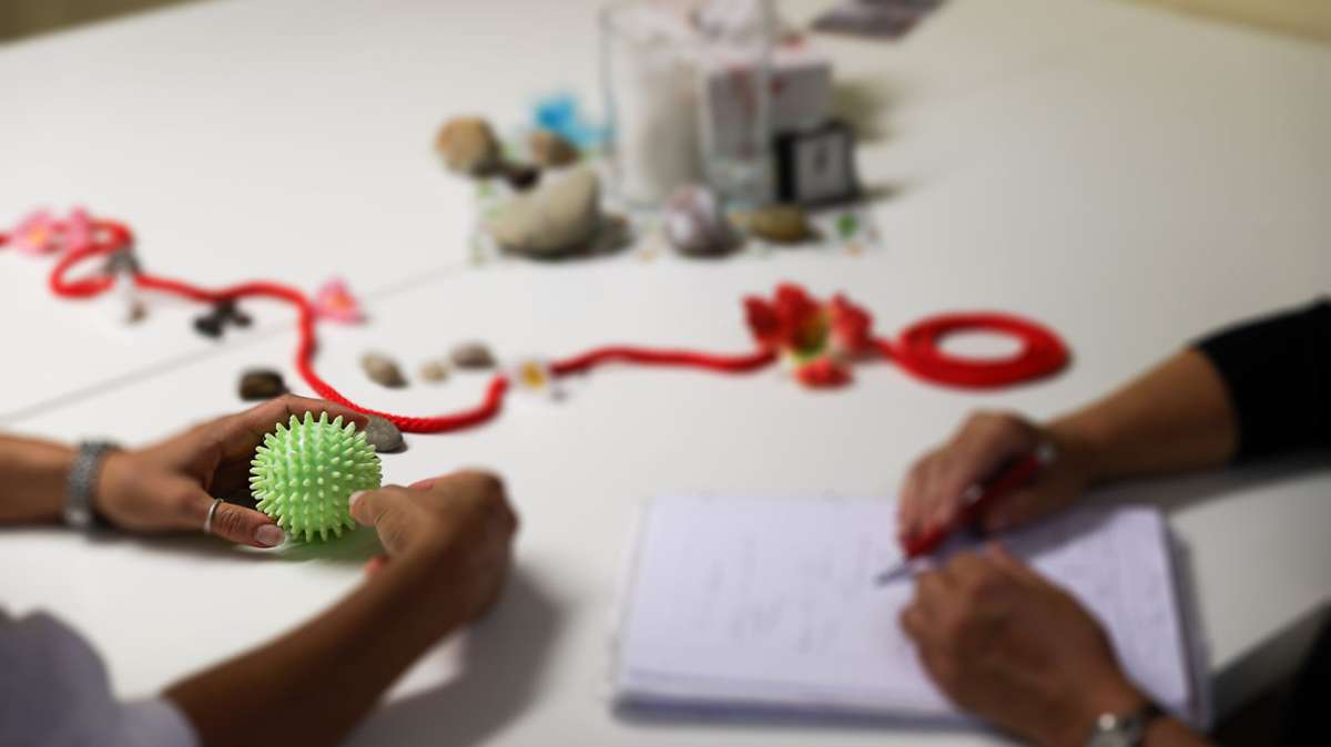 Elvira Pfleiderer macht Atem- und Kopfübungen mit ihrer Klientin. „Wenn sie auf einen Therapieplatz warten müsste, würde das ein halbes oder gar ein ganzes Jahr dauern“, sagt die Expertin. Bis dahin wären die Probleme längst chronisch geworden. Vielen Klienten könne man so gut helfen, dass eine Therapie danach gar nicht mehr nötig sei, so Pfleiderer. Irgendwann, sagt sie, hoffe man auf Landesmittel, um das Projekt sicherzustellen. Bis dahin aber braucht es Spenden.