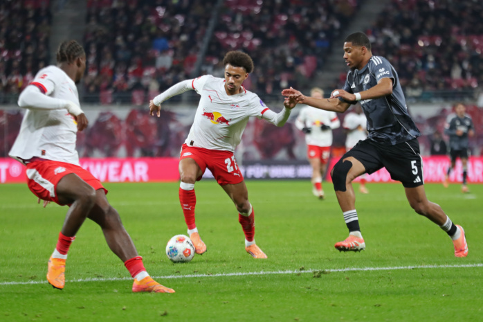 Tidiam Gomis (27, RB Leipzig) gegen Aurèle Amenda (5, Eintracht Frankfurt). Foto: Jan Kaefer