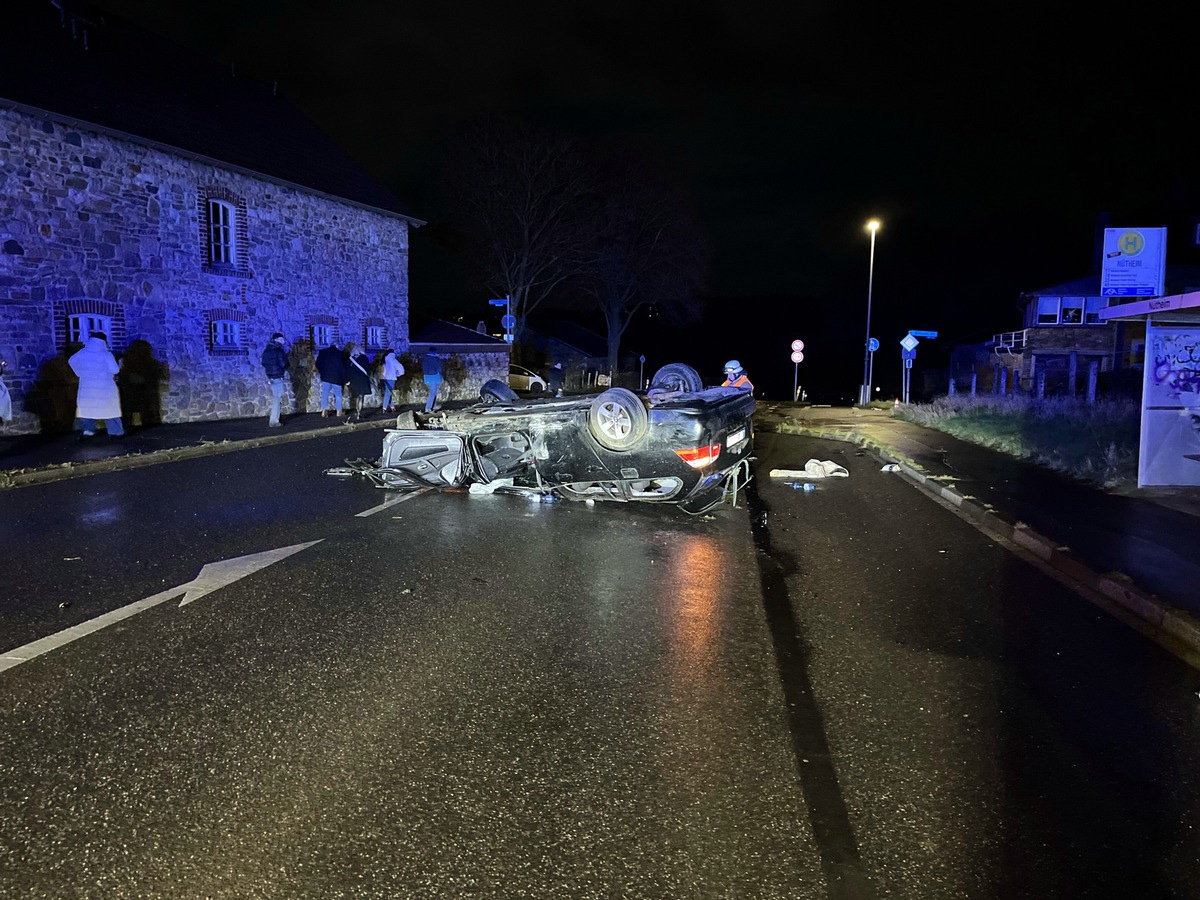 Gegen 23:30 Uhr fuhr der 18-Jährige aus Aachen mit einem Auto die Aachener Straße in Richtung Schleckheim entlang. Kurz vor der Kreuzung zur Nütheimer Straße kam er von der Fahrbahn ab und überschlug sich. Das Auto blieb schließlich mitten auf der Fahrbahn auf dem Dach liegen. Der 18-Jährige Fahrer und sein 18-jähriger Beifahrer aus Aachen wurden verletzt, konnten sich jedoch selbstständig aus dem Fahrzeug befreien.