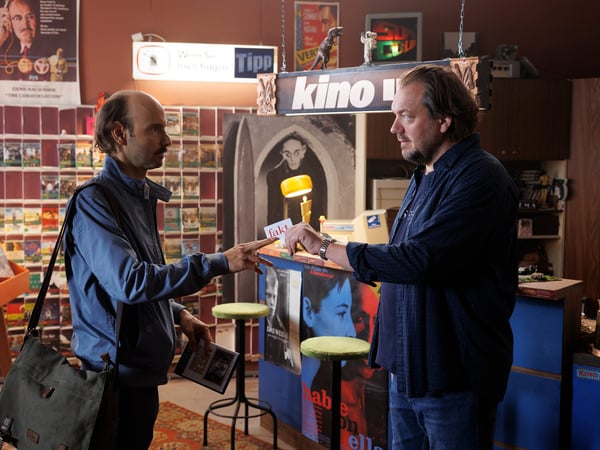 Ohne Premium-Mitgliedschaft keine Auskünfte: Micha Hartung (Charlie Hübner) zapft seinerseits den Schreiberling (Leon Ullrich) an, der ihn ihm einen Helden sehen will.