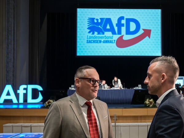 Der sachsen-anhaltische AfD-Chef Martin Reichardt (l.) im Mai mit Ulrich Siegmund (r.), dem AfD-Spitzenkandidaten für die Landtagswahl 2026. Ob sie der Reisedelegation angehören, ist unbekannt.