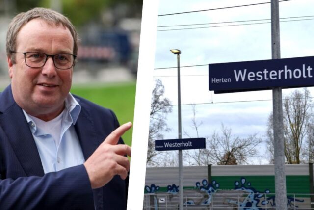 NRW-Verkehrsminister Oliver Krischer kommt zur offiziellen Eröffnung der beiden neuen Haltepunkte in Herten-Westerholt (im Bild) und Gelsenkirchen-Buer. © Oliver Berg (dpa)/Olaf Krimpmann