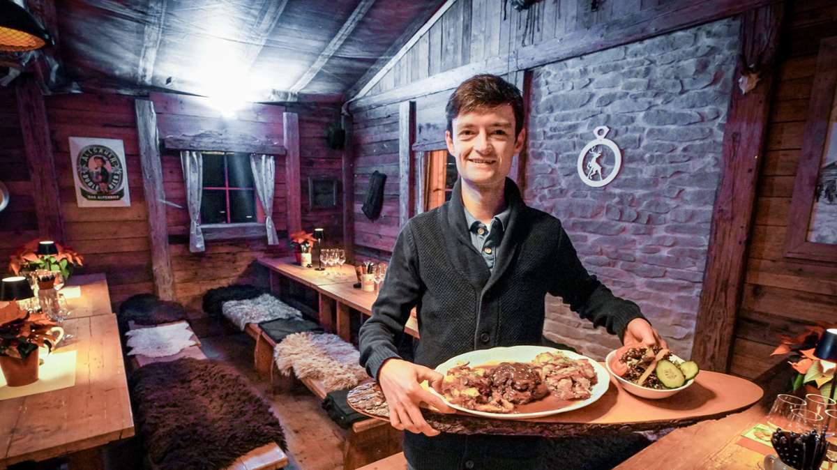 Für den Vater hat Dominique-Maurice Niedrist eine Schweizer Hütte aufstellen lassen. Foto: Ferdinando Iannone Kochenbas mit „gemütlicher Skihütten-Atmosphäre“