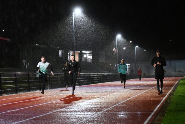 Daran war bis vor einem Jahr nicht zu denken an der Fritz-Erler-Straße: Lauftraining unter Flutlicht – und auf einer Tartanbahn. © Olaf Krimpmann