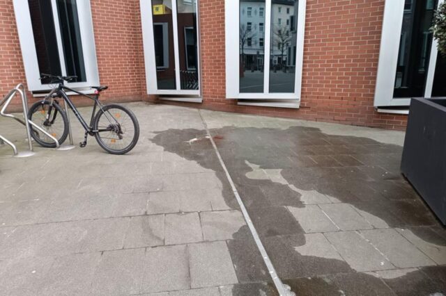 Mitten in der Nacht sollen in Düsseldorf Schüsse gefallen sein – am Morgen war noch Blut vor Ort zu sehen. © Alexandra Balzer/dpa
