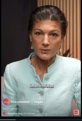 Sahra Wagenknecht bittet um Unterschriften (Screenshot Instagram)