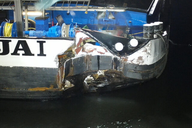 Am Montagbend (15.12.) rückte die Feuerwehr Dortmund zu einem Einsatz auf dem Dortmund-Ems-Kanal aus. Um 18:24 Uhr wurde gemeldet, dass ein Frachtschiff im Bereich der Brücke Ellinghauser Straße mit der Spundwand kollidiert war. Der Bug des mit Metallschrott beladenen Schiffes wurde schwer beschädigt. Dennoch erreichte der Frachter aus eigener Kraft den Hardenberghafen. Durch einen Riss drang Wasser in den vorderen Bereich ein, wodurch Kentern möglich war.