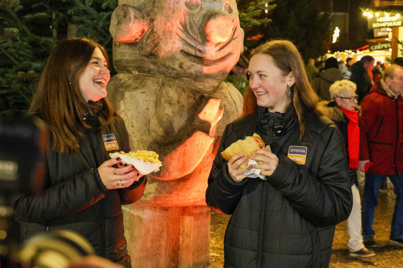 hat den Selbsttest gemacht. Unsere Reporterinnen Katharina Geppert und Emely Schrön, beide Vegetarierinnen, haben sich durch den Weihnachtsmarkt probiert. Welche leckeren Speisen sie dort gefunden haben und ob sie am Ende auch satt wurden, das sehen Sie nachfolgend im Videobeitrag. O|N-Fotograf Marvin Myketin hat die beiden außerdem mit seiner Kamera begleitet. Klicken Sie sich durch seine Bildergalerie. Aber Vorsicht: Das könnte sehr hungrig machen. (kg) +++