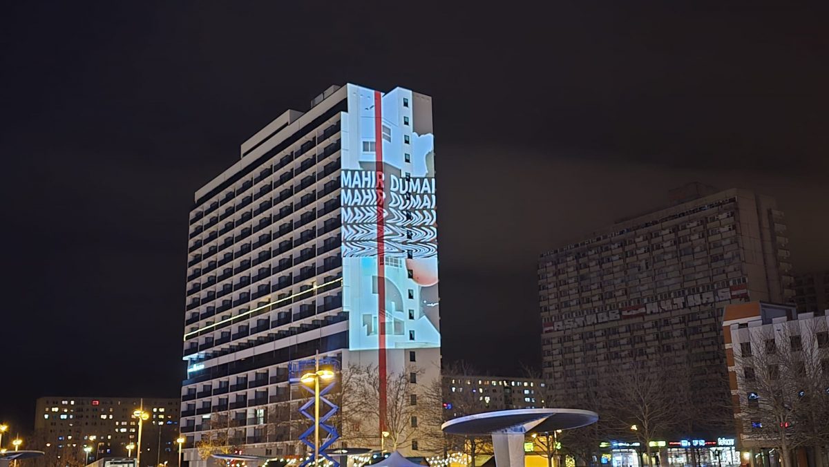 Am Freitagabend folgte ein weiterer Höhepunkt: Die Scheibe A wurde mit einer großformatigen Fassadenprojektion eindrucksvoll in Szene gesetzt. Der Künstler Mahir Duman entwickelte eigens für das Gebäude eine Videoprojektion, die die Fassade in ein lebendiges Lichterspiel verwandelte und dem Platz eine besondere Atmosphäre verlieh. Viele Besucherinnen und Besucher blieben stehen, um die Projektion zu verfolgen und den Platz in ungewohnter, künstlerischer Form zu erleben.